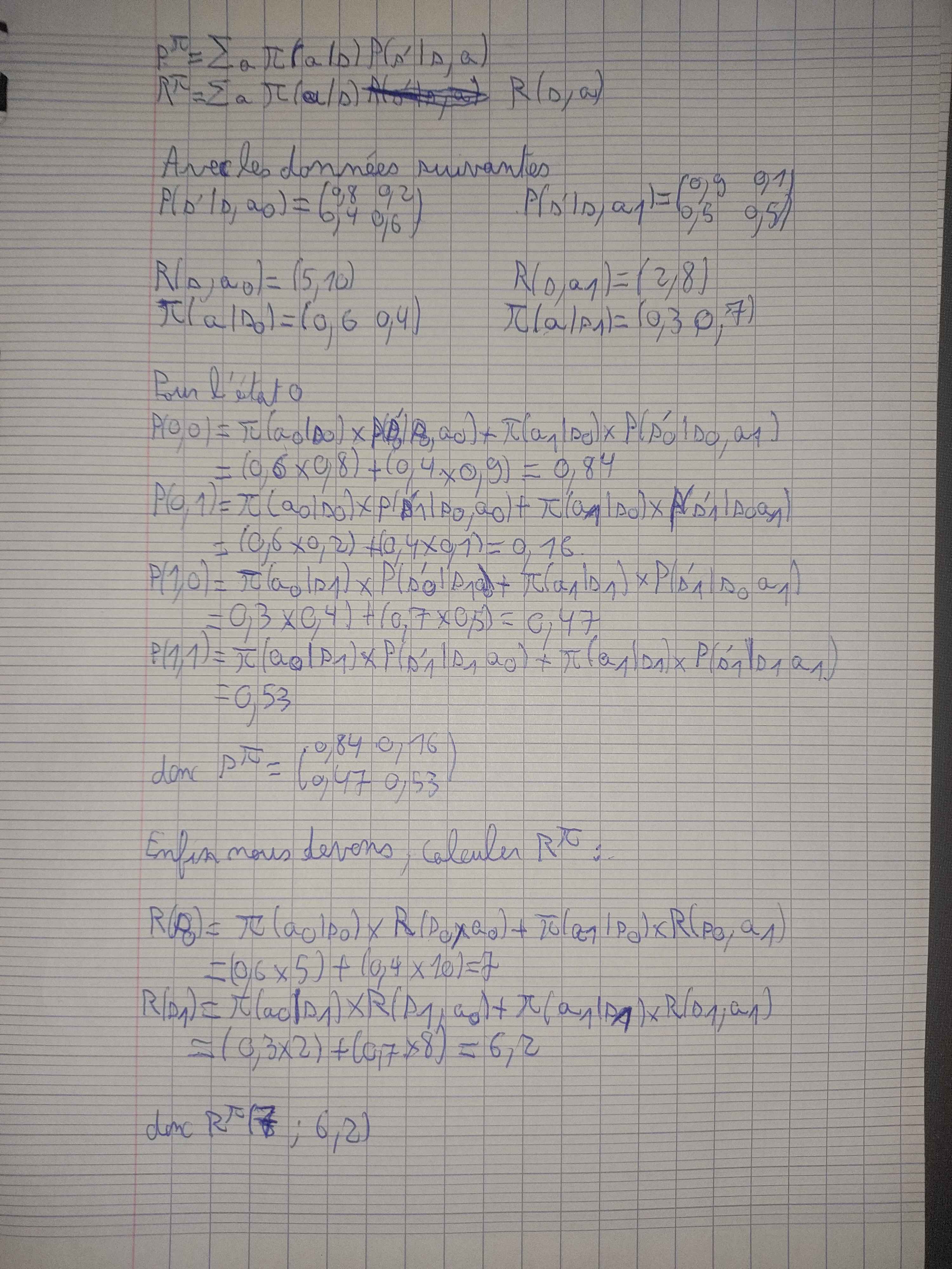 R_MRP[s] ← R_MRP[s] + Politique[s][a] × R[s][a]